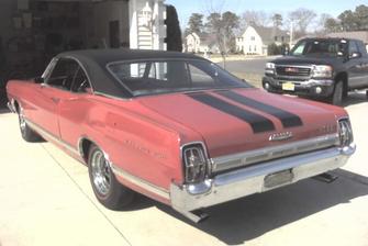 Tony has this real nice 66 Chevy Pickup. The last year of that body style. He has done a real nice job of redoing this truck. He has won a couple of awards already. But can you believe he drove it in the rain? Tony has gotten his father into the hobby also. Now "Pops" Dolceamore is cruising with junior in a pretty nice 67 Ford Galaxie 500.(update, Pops sold the Galaxy and purchased a newer T-bird)
